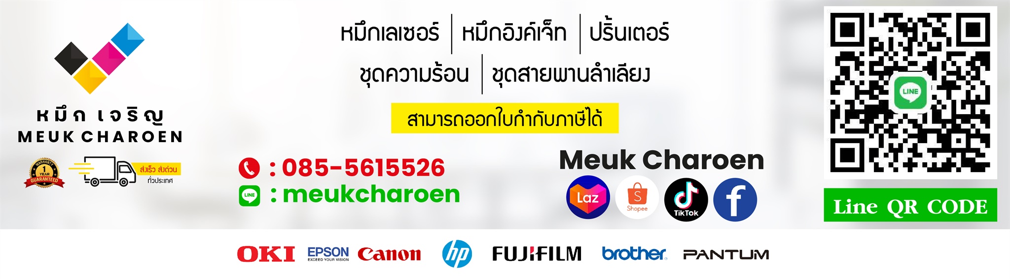 ยินดีต้อนรับสู่ MeukCharoen (หมึกเจริญ) ผู้เชี่ยวชาญด้านหมึกพิมพ์และอุปกรณ์การพิมพ์ที่คุณไว้วางใจได้ เราคือผู้นำด้านการจำหน่ายหมึกพิมพ์หลากหลายแบรนด์ชั้นนำ ไม่ว่าจะเป็น Brother, Oki, Canon, HP, Fuji Xerox, Epson และ Pantum ครบถ้วนทุกประเภท ทั้งหมึกแท้และหมึกคุณภาพสูง ในราคาที่คุ้มค่า